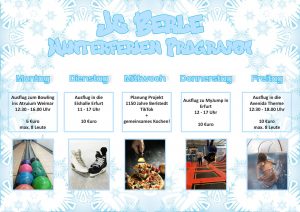 Im Nordkreis des Weimarer Landes befindet sich im Herzen von Berlstedt der Jugendclub JC-Berle. JC-Berle hat bereits sehr viele Jahre Bestand und wird seit 2018 vom Team Jugendarbeit Weimar betreut. Im JC-Berle können Kinder und Jugendliche im Alter von 10 – 21 Jahren ihre Freizeit verbringen und gestalten. Neben den täglichen Angeboten wie Dart, Kickern, Brettspiele, Quatschen oder Chillen finden auch regelmäßige Ausflüge,  Ferienfreizeiten u.v.m. statt. Wir freuen uns über euren Besuch und haben immer ein offenes Ohr für eure Wünsche, Anregungen und Bedarfe.